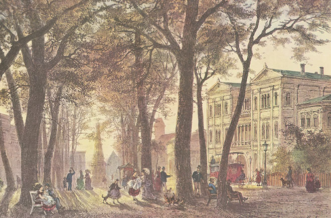 Bahnhof und Palmaille 1855, Lithographie Wilhelm Heuer