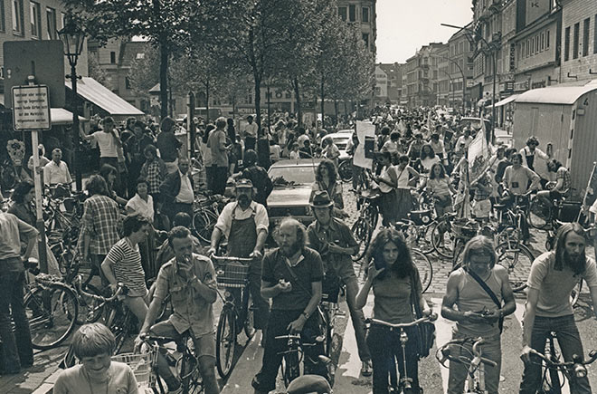 Fahrraddemonstration am Spritzenplatz, 1981, Foto: Stadtteilarchiv Ottensen / Helmar Heyken