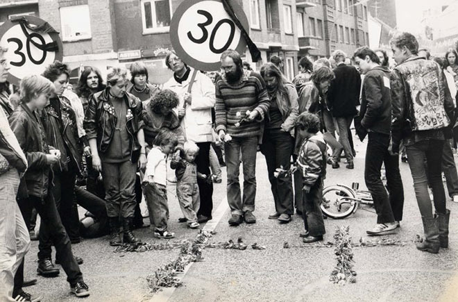 Doch seit der Fertigstellung des Elbtunnels und der Eröffnung der westlichen Autobahn nahm in Ottensen der Durchgangsverkehr zwischen City und Autobahn zu. Es formierte sich eine Protestbewegung gegen die Verkehrsplanung „von oben“. Die „Bürgerinitiative Verkehr“ kämpfte gegen zweispurige Autobahnzubringer durch die Straßenzüge Kepler- und Arnoldstraße sowie Klaus- und Eulenstraße. Nachbarschaftsinitiativen forderten „Verkehrsberuhigung“ und ein Verbot des Schwerlastverkehrs. Anwohner und Anwohnerinnen installierten selbstgemachte „Tempo 30“-Schilder, rollten Zebrastreifen aus und spielten Volleyballturniere auf den Straßen. Fahrradkonvois nach dem Motto „Radeln in Rudeln“ zwangen Autofahrer zum Schritttempo und blockierten Kreuzungen.